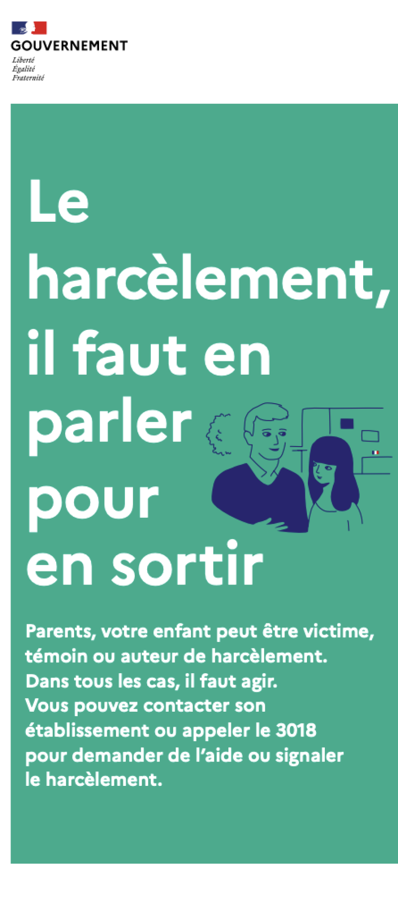 - Distribuez le dépliant "Le harcèlement, il faut en parler pour en sortir".